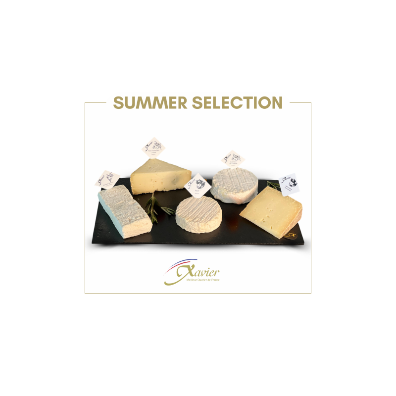 The Seasonal Cheese Platter by Xavier Fromagerie: a fresh selection for your summer gatherings! Cheese selected and aged by our Cheese Master François Bourgon, awarded Best Craftsman of France (MOF) in 2011. Total weight of the platter is 1kg.