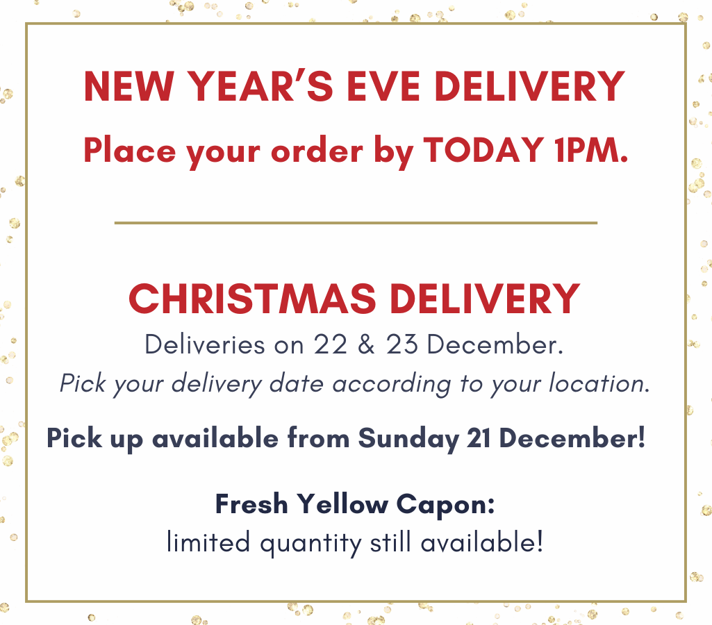 For pick-up orders, you can come at the office from 2pm to 6pm from Monday to Friday.